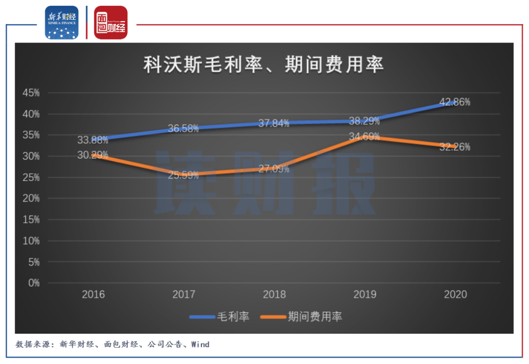 图2:2016年至2020年科沃斯毛利率、期间费用率