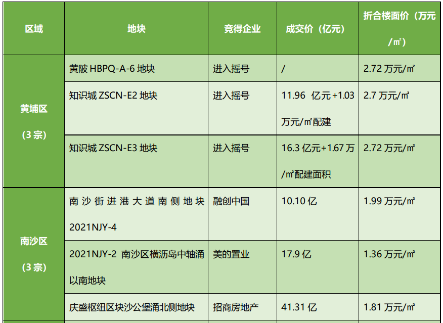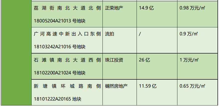 从成交数据表看,融创中国、美的置业、招商房地产、越秀地产、正荣地产、华润置地、深圳振业、联粤房地产、珠江投资、保利置业、樾然房地产都顺利拿下了宗地。