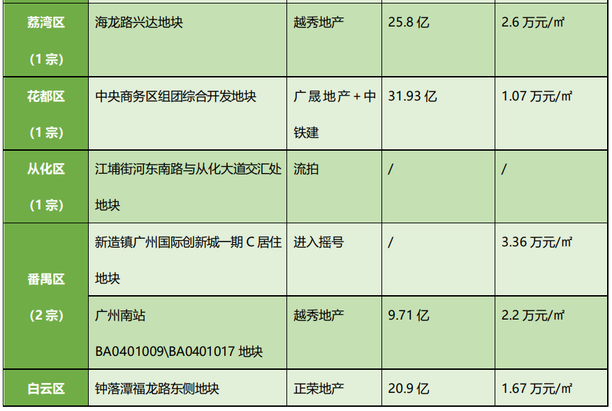 南站宗地拿地成本逾百亿,增城、白云合计4宗地流拍