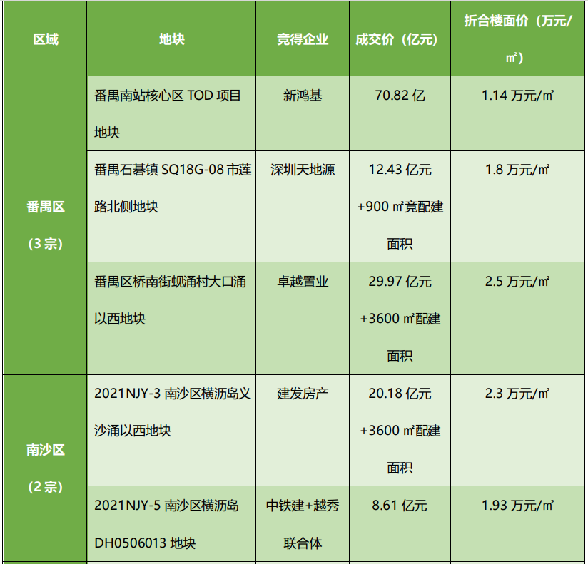 在成交的20宗宅地中,成交价最高的是位于番禺区的南站核心区TOD项目地块,被新鸿基以70.82亿的价格拿下。此外,新鸿基还需要给34.61亿元的配建成本,两者叠加,新鸿基拿地成本实际超105亿元,是48宗地中总价最高的地块。