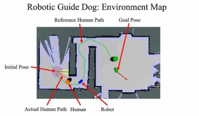 研究人员还在机器导盲犬中添加了集成的传感器套件和路径规划算法,让机器导盲犬可以进行室内的路径规划和导航。