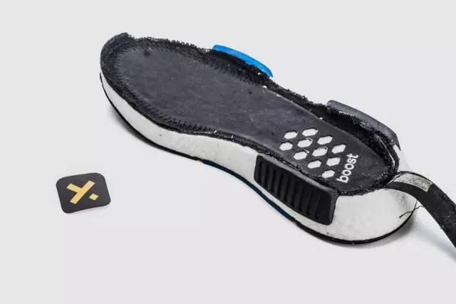 鞋面部分已经拆解完毕,我们再来看看剩下的大底部分。由于已经没有了鞋面的遮挡,大家可以很容易看出NMD并有放置鞋垫这一特点。设计师只是在Boost中底上多加了一层带有镂空设计的织物,这样的设计固然个性十足,但少了鞋垫的辅助,使得NMD在脚感上比起同样采用全掌Boost科技的Ultra Boost等鞋要硬一点。