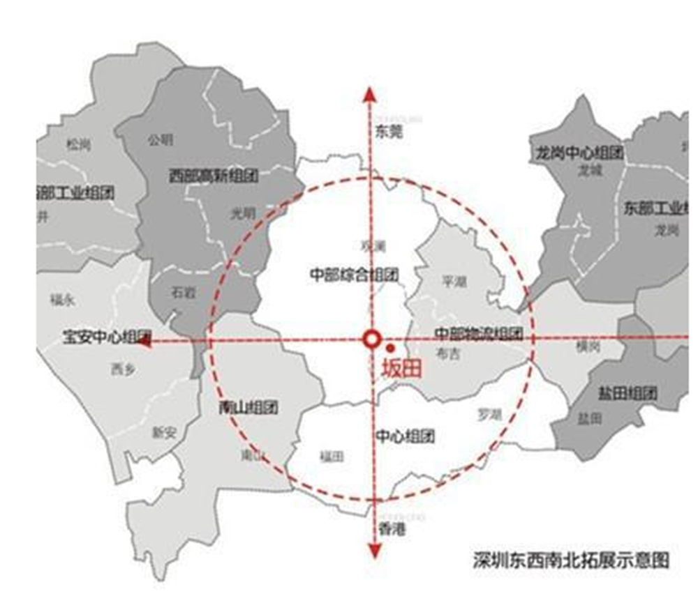 从地理位置上看,坂田正位于深圳的中轴之外,是福田、龙岗、龙华三区交界点,与罗湖、福田、南山三大城市CBD紧密相连,优越的地段、商务资源的融通,对于坂田经济与商务的发展也给予了充足的能量。
