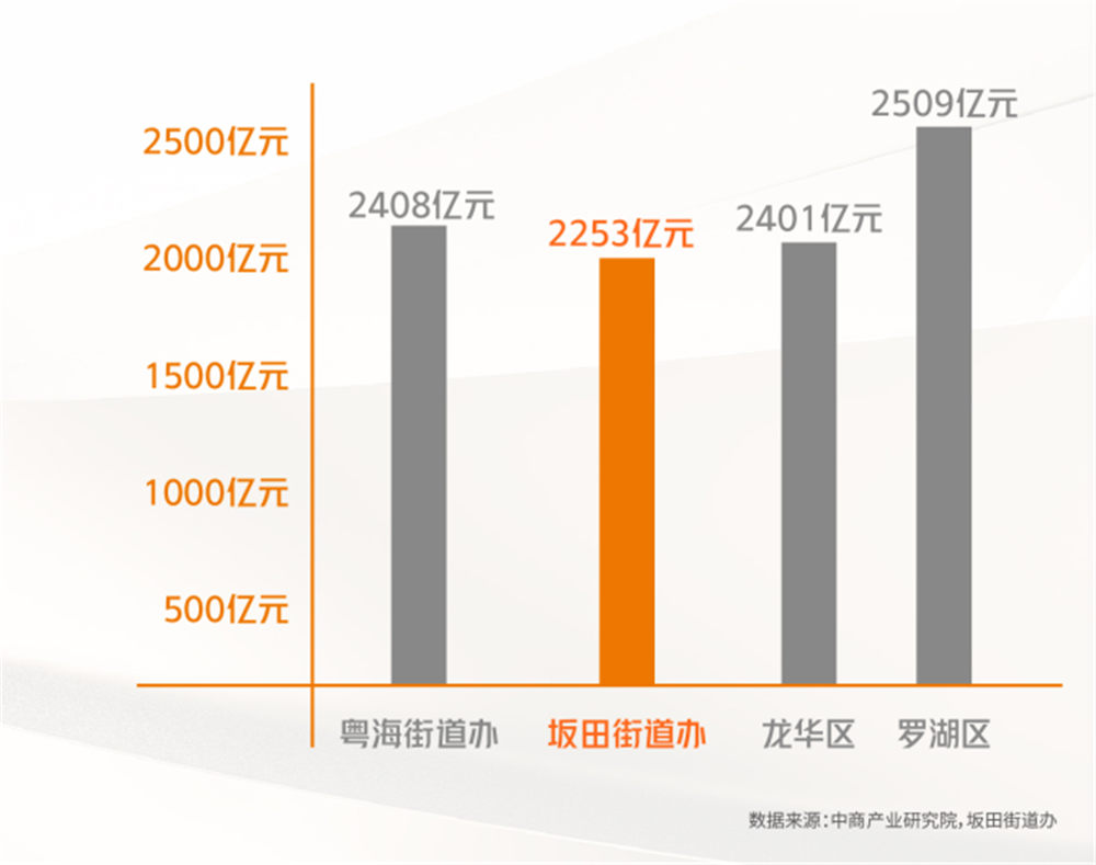 近些年,坂田的发展成绩有目共睹。根据2018年坂田街道办发布的数据显示,坂田街道办年收入实现2253亿元,比号称“中国第一街道”的粤海街道办仅差155亿元。而这一个街道就为龙岗区的GDP贡献了70%,坂田实力绝对不容小觑。
