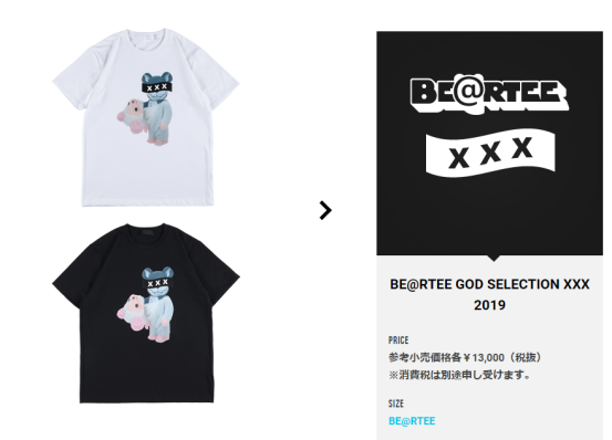 BE@RTEE是BE@RBRICK的子品牌,其产品主要为印有BE@RBRICK图案的T恤和连帽衫,另外还有书包、钱包、购物袋、马克杯等生活用品。BE@RTEE中的T恤价格较高,单品售价大多在3500日元(约236人民币)以上,一些稀有联名款的价格则能达到13000日元(约880人民币)。