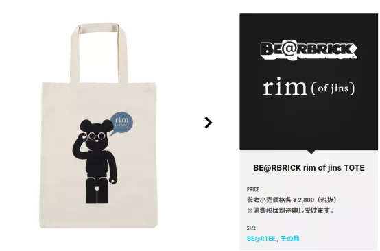 除了T恤,BE@RTEE售卖的生活用品价格也偏高。例如下图这款纯棉的购物袋,其参考售价为2800日元(约190人民币)。