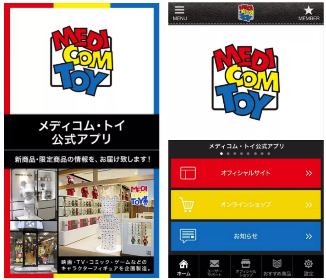 2018年6月,Medicom在苹果AppStore和Google Play上线了官方APP“メディコム トイ公式アプリ”。App的UI设计非常简单,只有网站链接、推荐商品、线下地址等。