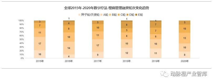 全球2015-2020年数字疗法-慢病管理企业融资轮次变化趋势