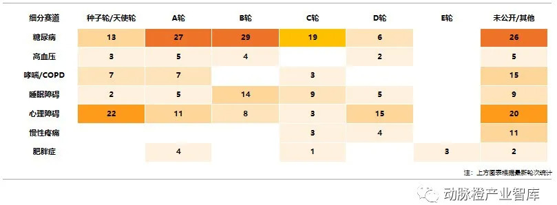 在数字疗法-慢病管理细分赛道中,以糖尿病作为赛道切入点的企业更容易发展出较为成熟的业务模式,并逐渐覆盖到综合慢病领域;另一方面,专注于睡眠障碍和心理障碍业务的企业也保持了较强的吸金能力。