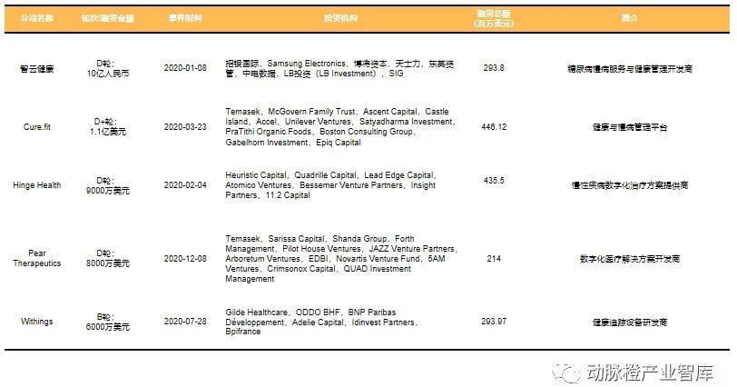 2020年全球数字疗法-慢病管理企业投融资TOP5