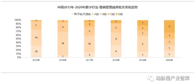 中国数字疗法-慢病管理2015-2020年融资轮次变化趋势