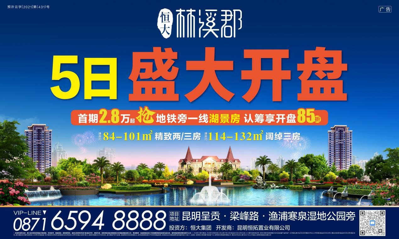 昆明恒大林溪郡,世界500强恒大集团首献呈贡高新的封面美学巨著,承载着全城的热切期待,首献建面约84-101㎡精致两/三房,建面约114-132㎡阔绰三房。5月5日,昆明恒大林溪郡将迎来盛大开盘,首期2.8万起,即可入手地铁旁一线湖景房,开盘前认筹,还可享受开盘85折钜惠。