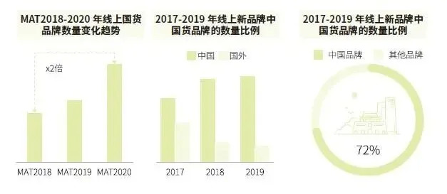 天猫线上国货品牌三年新增10万多个,增速远超国外品牌,在线上市场占有率超七成。