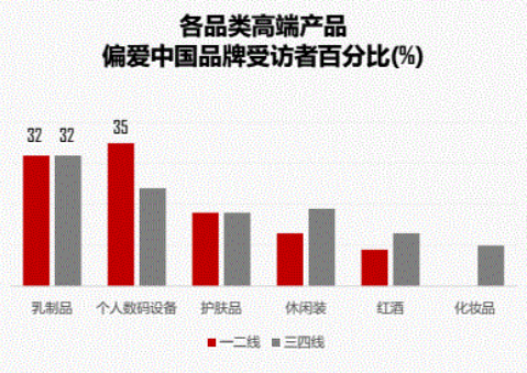 调查显示,在乳制品、数码产品等品类中,近三分之一的消费者在高端产品上会选择中国品牌。