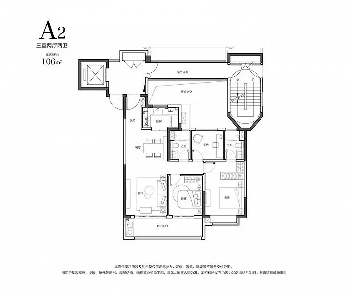 建面约185㎡3房2厅3卫户型