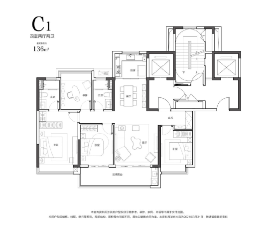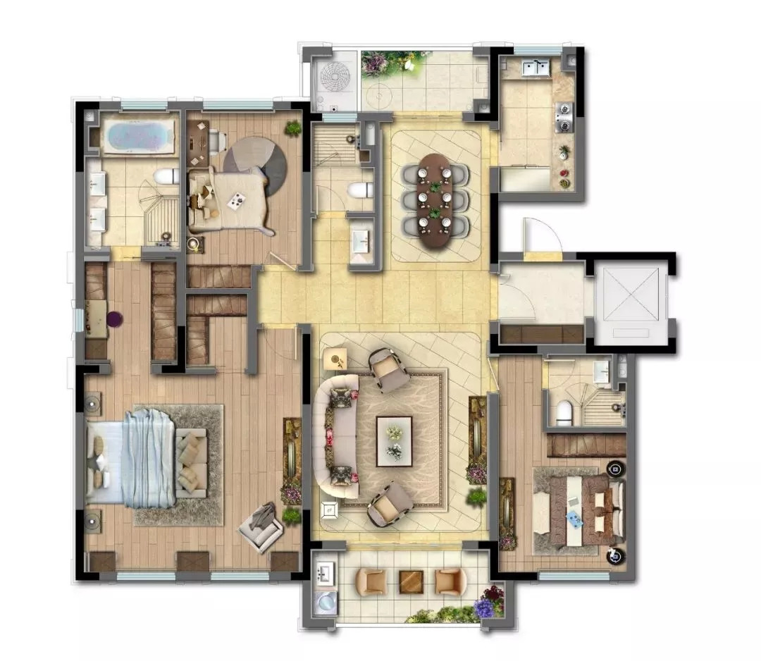 建面约235㎡4房2厅3卫户型