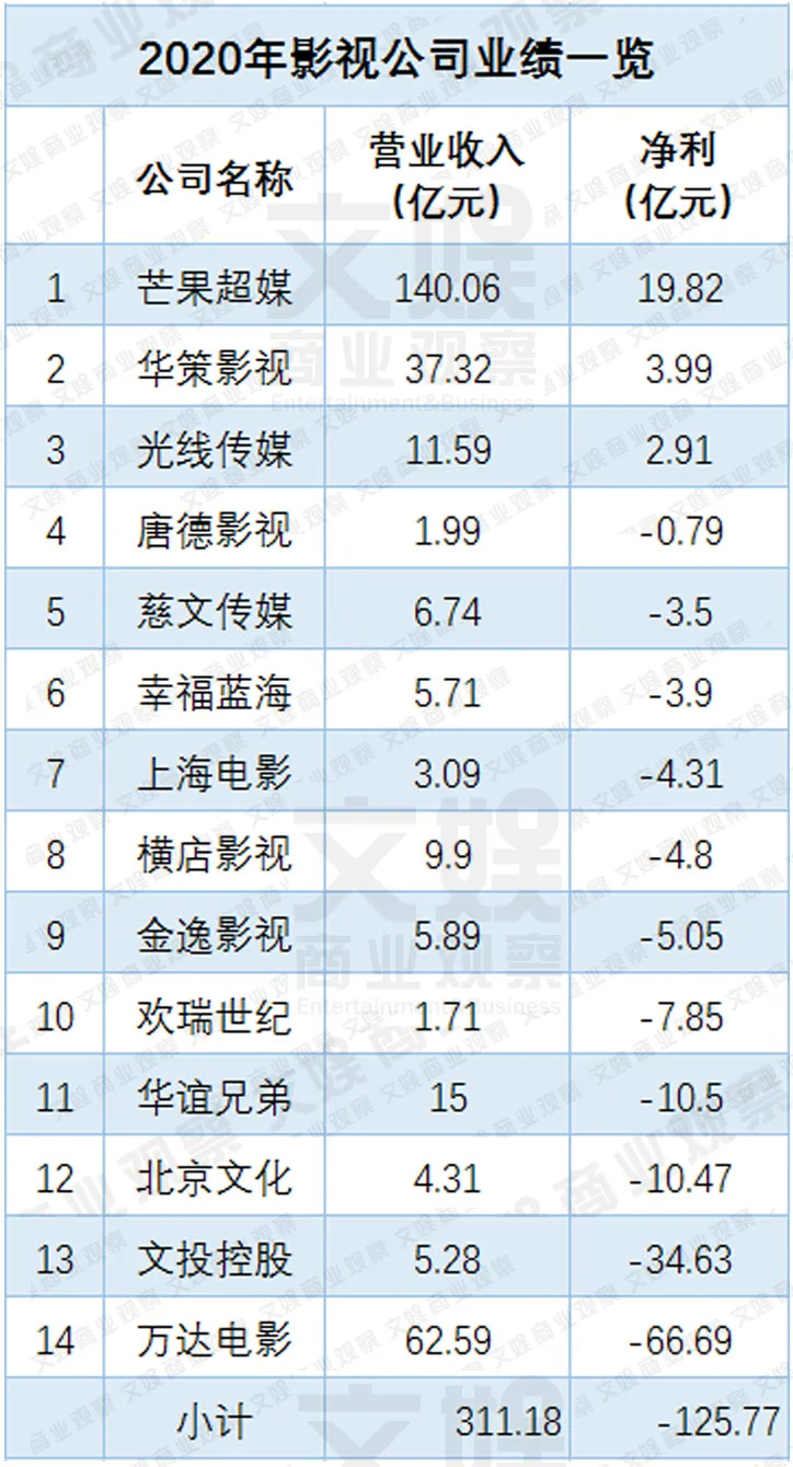 更加可悲的是,14家影视娱乐公司2020年净利润加起来巨亏125.77亿元,和文娱商业观察在文章 《整体巨亏150亿,影视股能够亏出个未来吗?》中预测的基本一致,影视行业2020年的盈利能力太差了,一年亏掉约20个爽。