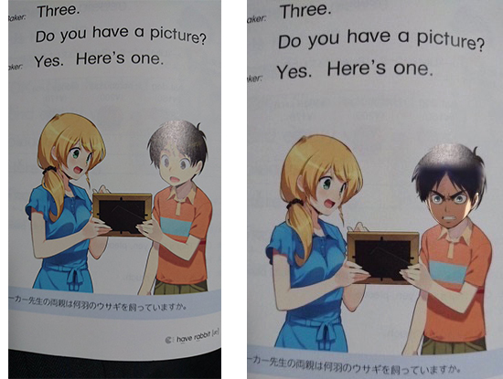 甚至直接把老师身边的男生换成了艾伦↓