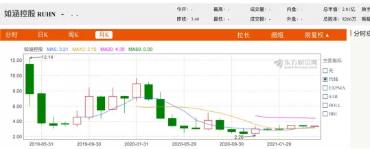 这样的结局早有预兆。如涵的发行价为每股12.5美元,预计发行规模1.25亿美元,但上市首日,如涵就遭遇破发,股价大跌37%,市值蒸发近四亿美元。随后如涵的股价一路走低,2020年10月30日,如涵股价来到了历史最低水平,当天收盘价为2.34美元,较发行价跌幅逾80%。