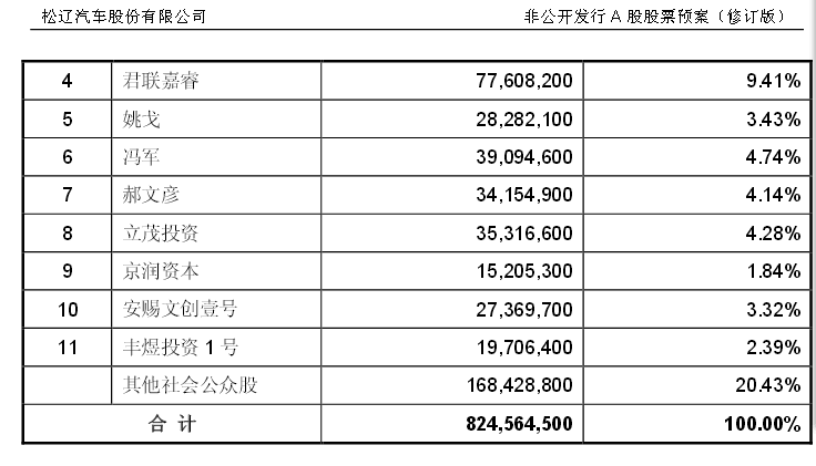 发行之后,松辽汽车的股权分布是这样的: