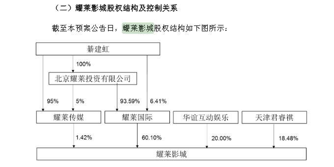 在被上市公司收购前,耀莱影城股权结构是这样的: