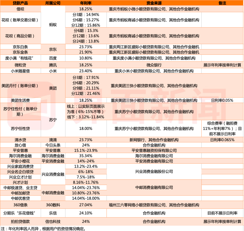 不过需要说明的是,上述表格中列出的年化利率仅为记者测试结果。随着用户资信不同,其承担的贷款年化利率或也将不同。