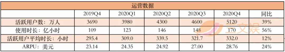 用户方面,年新增用户1430万,年活跃用户突破5000万人,且流媒体使用总时长同比增长209亿小时,达到创纪录的587亿小时。