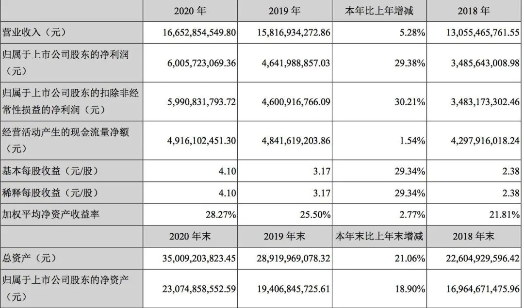 4月29日,泸州老窖披露2020年年报和2021年一季报,报告显示,2020年,公司全年实现营收166.53亿元,同比增长5.28%;净利润60.06亿元,同比增长29.38%。