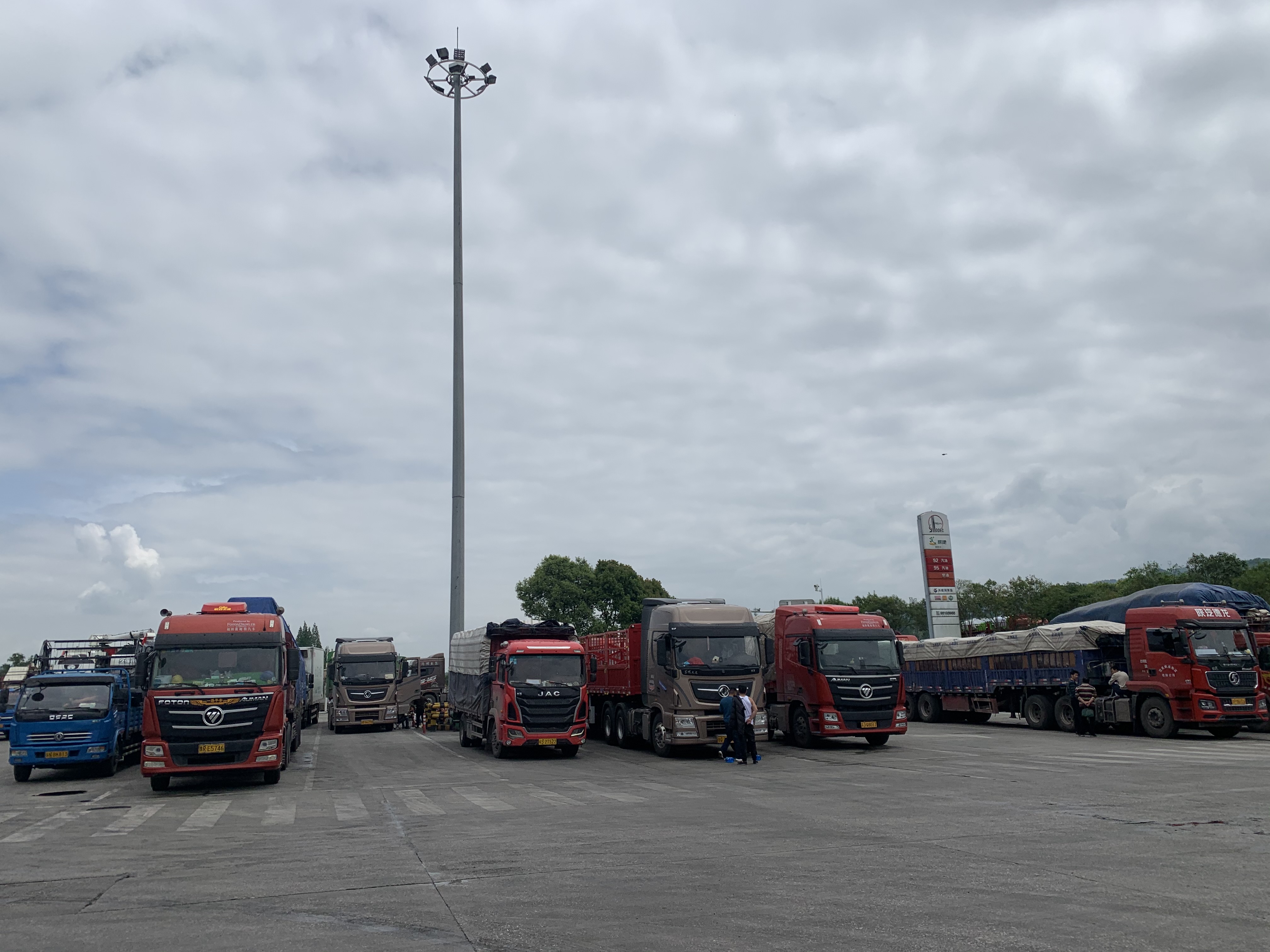 我见到她时,她刚在洗浴中心洗了头,没有吹风机,头发湿漉漉的绑着。她动作麻利,出发前跑去跟物流公司的人打招呼,踩着黑布鞋,像脚下生风。“咱们出发晚了。”她说。前几天在路上,她的睡眠时间一再压缩,终于有空补觉,却不小心睡过了时间,物流公司晚上8点装完货,她9点多才醒来。