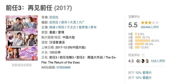 虽然市场上一直也有电影口碑与票房倒挂的现象,如《前任3》豆瓣评分仅5.5.分,但是票房达到了19.41亿元,可是这样的案例并不多。大部分口碑崩塌的电影,在上映前期凭借新鲜度或者流量卡司收割票房之后,将迅速被市场淘汰,而口碑发酵成功的电影则有可能实现逆袭,并为电影市场带来良性影响。