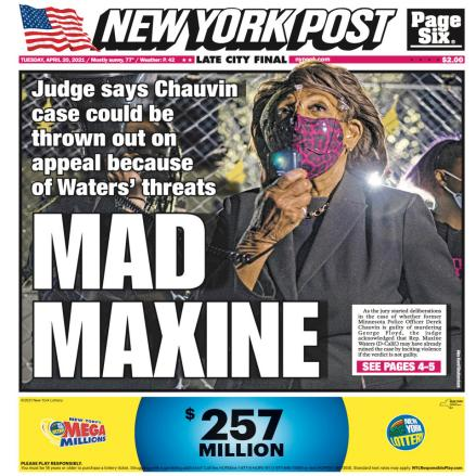 在美国,政客不干预司法程序,不对尚处于庭审中的案件表达立场是常识。对于沃尔特斯的言行,《纽约邮报》不禁用封面标题发出感叹:“玛克辛这是疯了”(MAD MAXINE)。