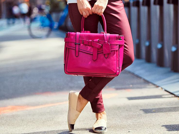 拼色 Chanel 配玫红手袋: