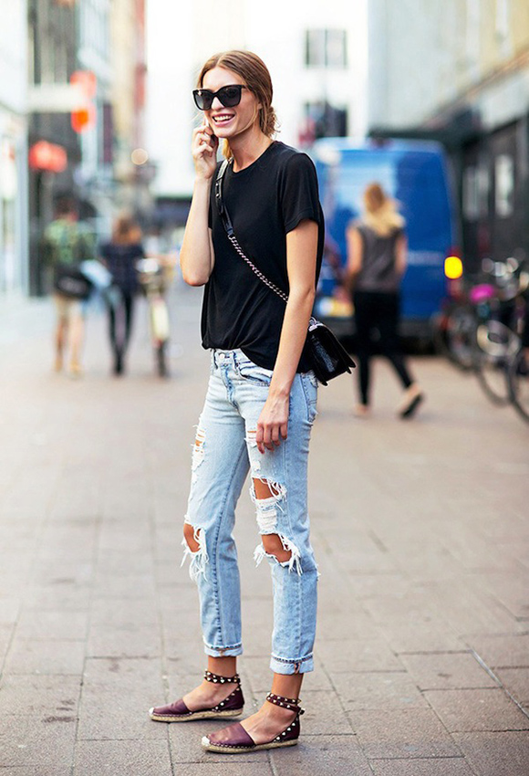 草编单鞋是露脚踝 style 的好伴侣: