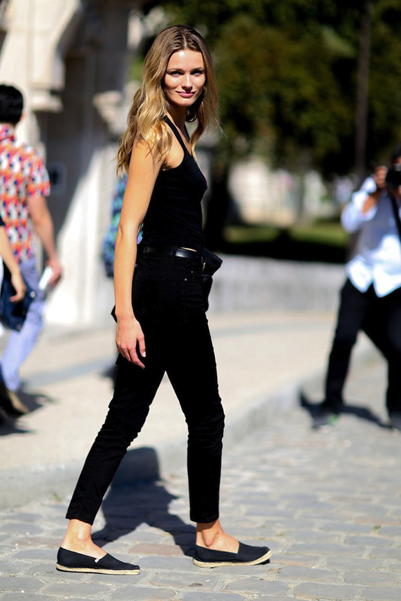 黑色草编底则是不费力时髦的代表: