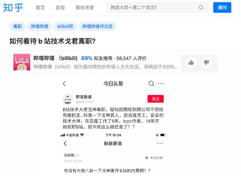 此前北邮学生在B站校招中引发的争论,就密集的发生在知乎,相关话题挂在知乎热榜前列多日。其后,B站当事面试官及B站官方都发布了多少看起来更似“推诿”的道歉。
