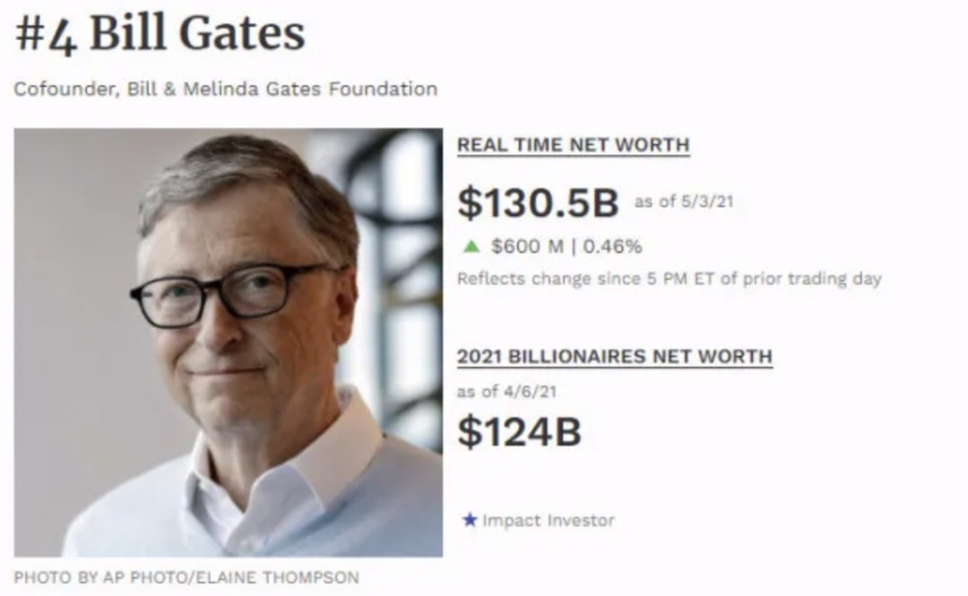 不过,顶级富豪的婚姻破裂,吃瓜的小伙伴们最感兴趣的肯定还是财产如何分配,毕竟跟普通人离婚不同,比尔·盖茨目前拥有1305亿美元财产(人民币8447亿),2020年全球富豪榜位列第四。