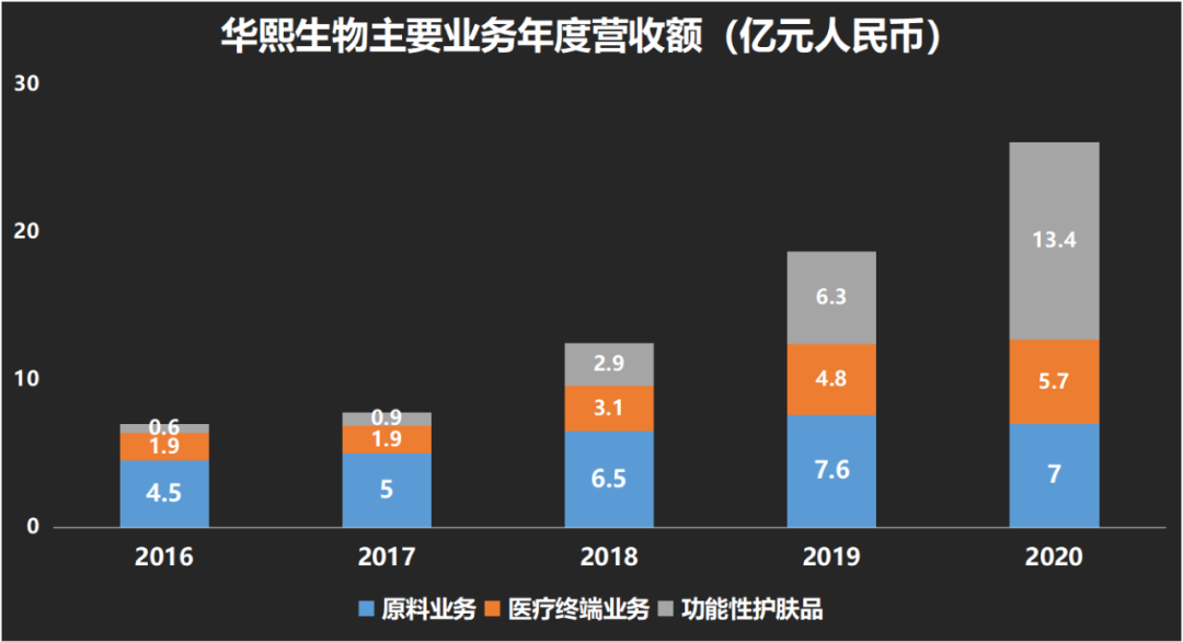 与此相反,尽管在服务科技创新企业的科创板上市,但华熙生物正在向依赖C端品牌的消费企业靠拢。