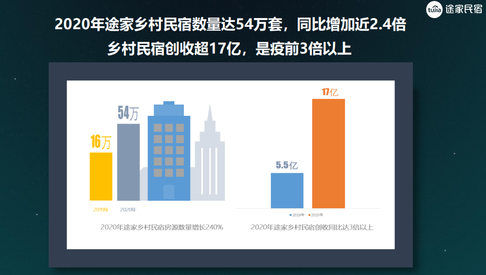 全国的其他旅游目的地城市,有些地方民宿确实有一定量减少,但更多的房东是在利用疫情这段时间重新装修和调整品质。我们七月份看数据时发现,依照途家的民宿定级标准,下半年高品质定级的民宿量有明显上涨。在总体量保持平稳的前提下,高品质民宿量在上涨。还有一个很有意思的数据,就是民宿行业的DAU(每日间夜均价)没有下跌,这与酒店行业有很大区别。去年五星级酒店价格基本上都正常价格的60%,但民宿行业的DAU没有下降。