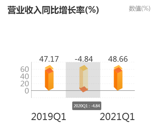 文轩财经从汤臣倍健近三年Q1的数据发现,2020年Q1在疫情的影响之下,营收出现回落,近三年来,汤臣倍健在2021年Q1数据最为亮眼,营业收入22.23亿元,同比增48.66%。