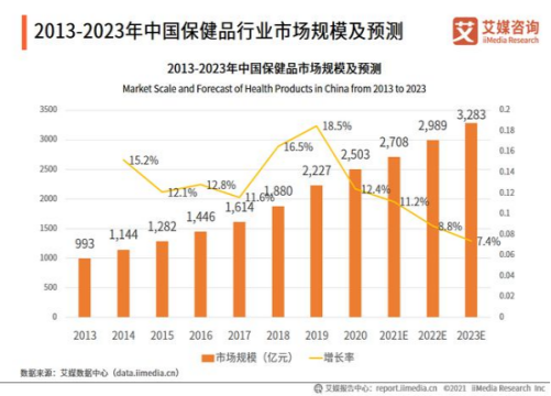来自iiMedia Research(艾媒咨询)数据显示,2020年中国中青年保健品市场规模达到700.9亿元,同比增长12.4%,预计到2021年市场规模将增至758亿元。