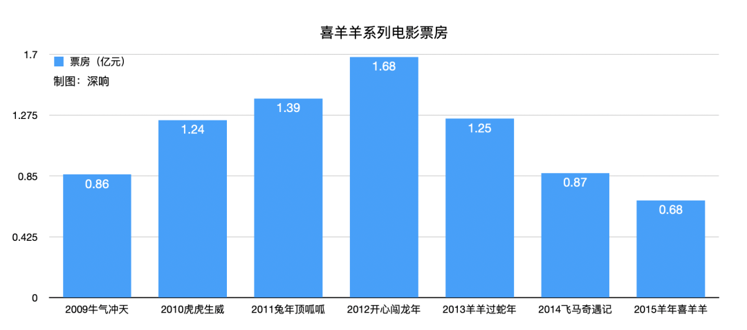 2009年寒假,成本仅600万的动画电影《喜羊羊与灰太狼之牛气冲天》卖到了8600万,刷新了国漫电影票房纪录。但值得注意的是,虽然正剧已经更新到了2021年首播的第二十三季,但《喜羊羊》的大电影却停留在了2015年,《喜羊羊与灰太狼之羊年喜羊羊》仅收获6765万票房,随后出品方暂停了该系列。