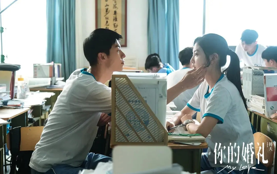 作为一部青春爱情片,《你的婚礼》当然也发生在高中。男生们课间如火如荼地讨论火箭队的球赛、不想上课的学生盘算着怎么逃课、教导主任总是动不动就嚷嚷要请家长……这些观众们熟知的只属于高中的画面,《你的婚礼》中也有呈现,只是对于青春的刻画,影片做得还不够,既不够用心也得不够写实。