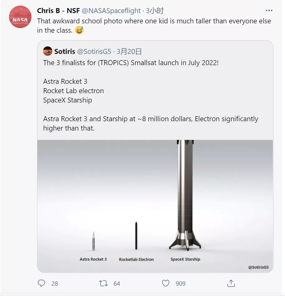 据SpaceX表示,火箭整体高至少120米,再加上星际飞船上层系统以及航天器,难怪连NASA也不由得调侃,在那张尴尬的学校照片上,有个孩子比班上的其他人都高得多。