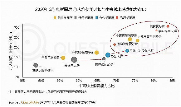 据QUESTMOBILE发布的《2020圈层经济洞察报告》显示,互联网改变人们的聚合形态,大数据令用户基于兴趣、爱好、行为构成不同的价值,形成独特的圈层经济,覆盖到生活的方方面面,形成特点鲜明的多样类型。