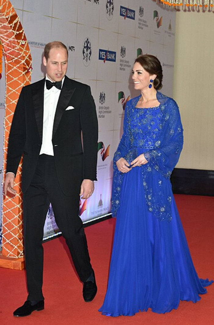 光彩照人的凯特王妃身穿一件蓝色的礼服,在肩膀上搭配有一条优雅的披肩。除此之外,她还戴着印度奢侈珠宝品牌阿姆拉巴莉的耳坠。而威廉王子的装束则是衣冠楚楚,他身穿黑色礼服和白色衬衫,还系着领结。
