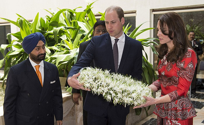 威廉和凯特还参观了为2008年孟买恐怖袭击的遇难者修建的纪念碑。在此之后,这对夫妇换上了便装,来到了椭圆广场。他们此行的最重要的一个行程是拜访泰姬陵,著名的威尔士王妃戴安娜曾到访这里。这对皇室夫妇希望他们此行能够产生一些“新的回忆”。