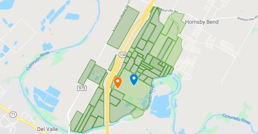 图中绿色部分都是特斯拉已经购买的土地。橙色的地方代表该公司目前正在建设德克萨斯州超级工厂的主楼,蓝色的地方是建筑工人目前正在地面上工作的地方。