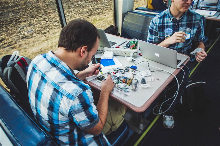 2014年,我非常幸运征得了编辑的许可,让我参加了首次Train Jam。一群独立开发者登上火车,前往在旧金山举行的游戏开发者大会(Game Developers Conference),他们坐在普通人之间,试着在途中开发游戏。这在当时是一个非常荒唐的想法。