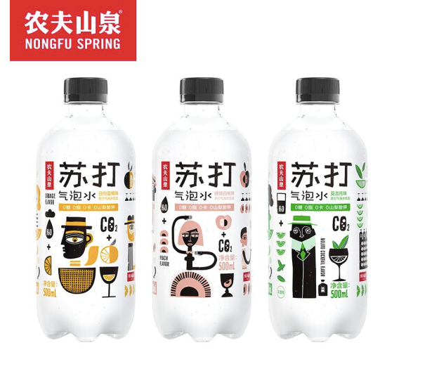 今年 4月,农夫山泉推出了三种口味的苏打气泡水:拂晓白桃味、日向夏橘味、莫吉托味。这款苏打气泡水历时两年的配方打磨,主打“0糖0脂0卡0山梨酸钾”。既满足了消费者对健康成分的需求,也带来了轻盈有趣的体验。