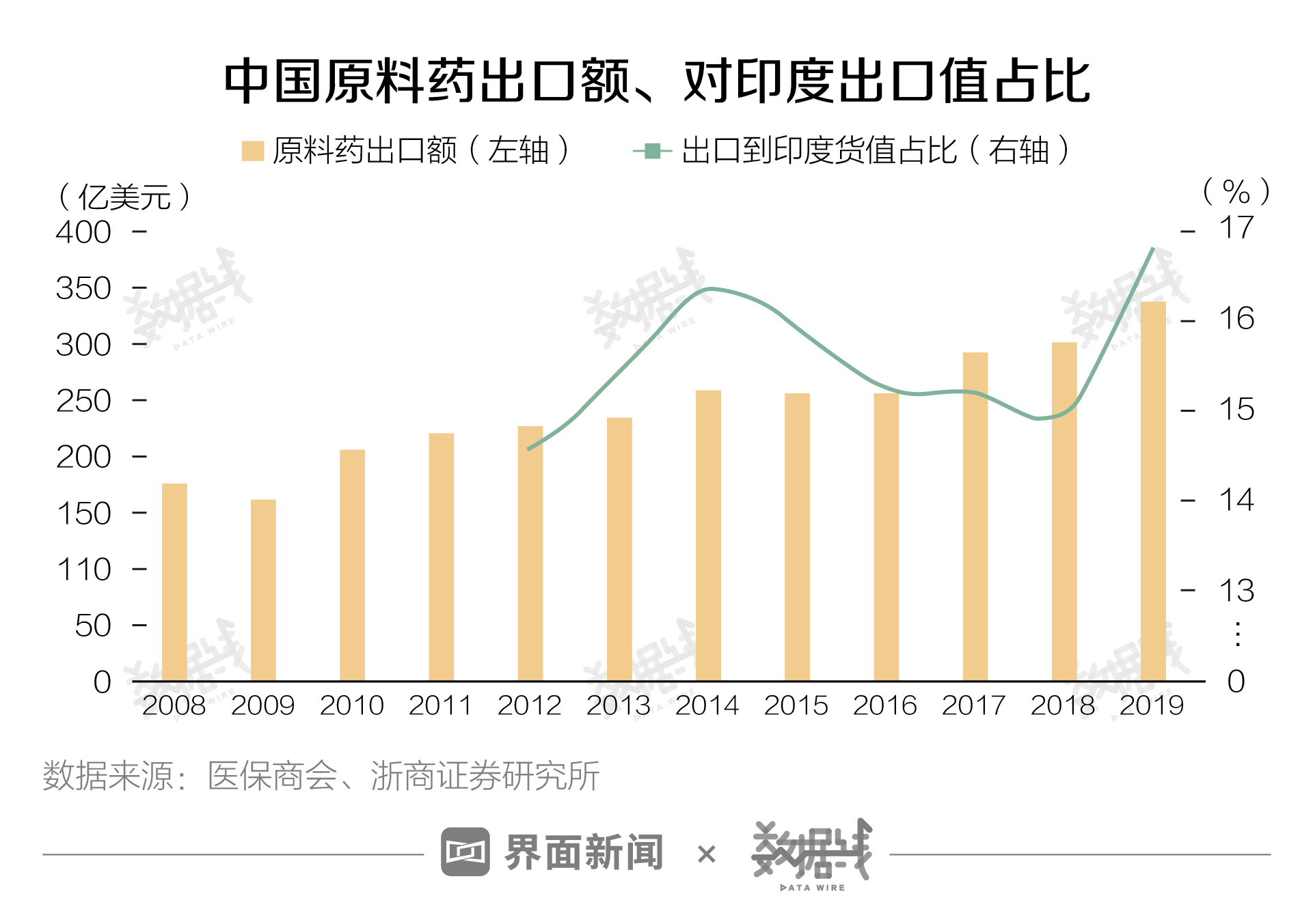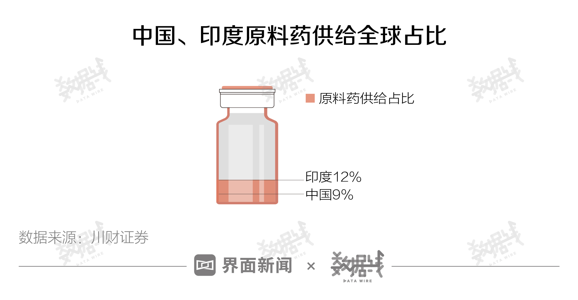 在制药领域,除美国外,印度和中国是全球原料药供应两个最大市场,占全球比重分别约12%和9%。目前印度采取的“全面封锁”举措或对当地原料药产能构成冲击,由此导致的产能不足或致相关订单转向中国。